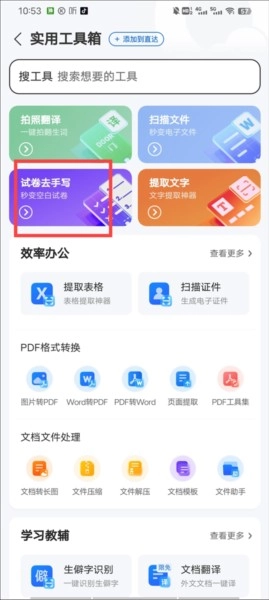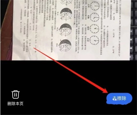 打开试卷的手写页面,拍摄试卷后,点击去擦除按钮就能去除试卷上的手写内容。
