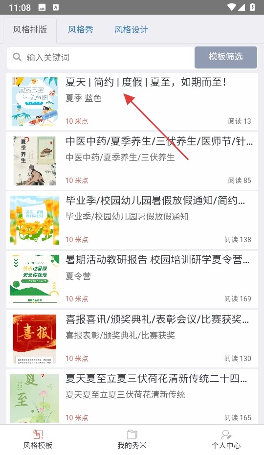 查看已选中的模板“夏天|简约|度假|夏至,如期而至!”的具体内容。