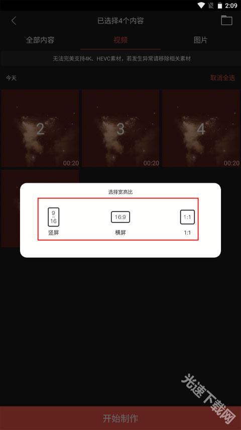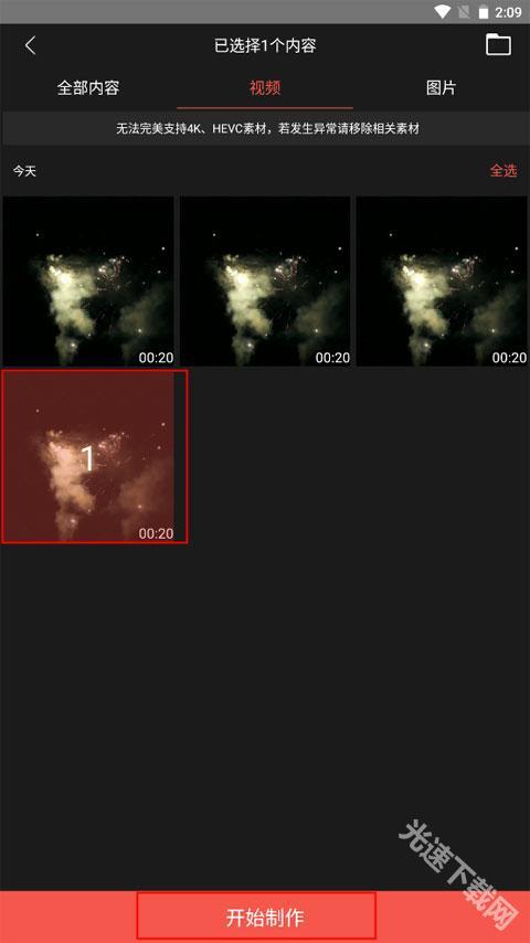 在你的相册里导入想要制作的视频素材,选中后点击下方的开始制作按钮。
