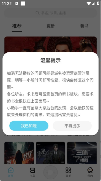 应用内全程打扰,确保用户享受纯净的听书环境。
