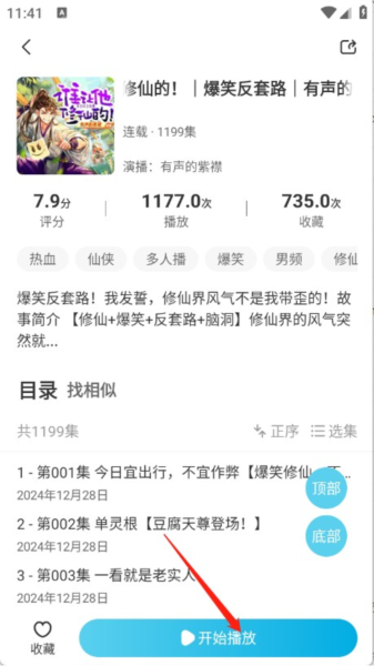 挑选好我们喜爱的小说后,在详情页面里点击“开始播放”按钮。