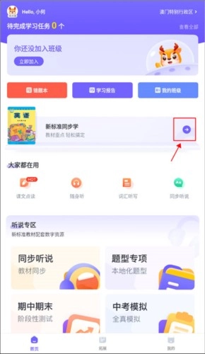 -同步听说:与教材课文同步进行听读跟读练习,针对单词维度给出即时反馈,让训练的颗粒度更加精细