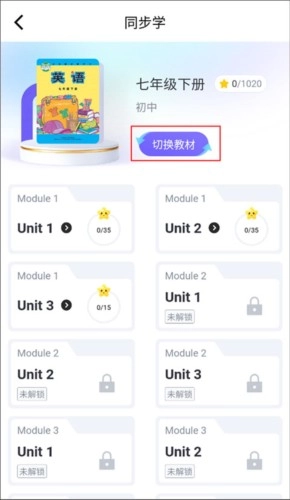 在选择教材的页面,就能看到初中和高中的课本,点击相应选项就能切换查看不同学段的教材内容。