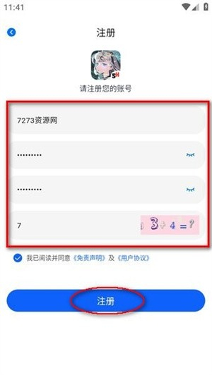 3、填写账号、密码,输入验证码,勾选同样用户协议,点击“注册”;