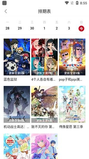 3.在软件排期表页面给大家呈现的是当天最新更新的动漫,方便大家浏览了解;