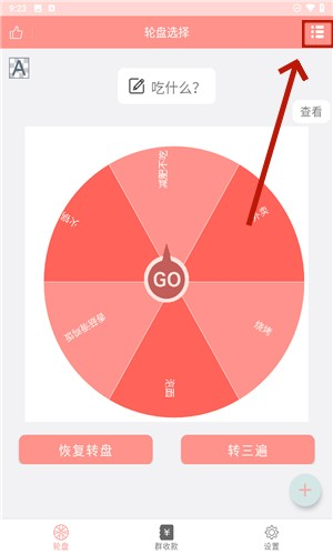 点击右上角的设置按钮,你就可以自定义轮盘内容。