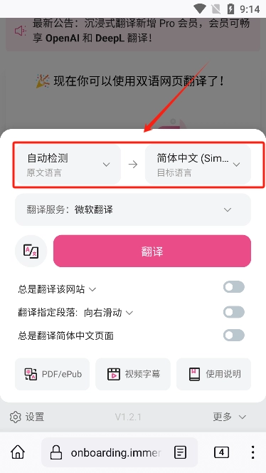 打开软件后,在主界面点击“沉浸式翻译”按钮,就能对网页内容进行翻译操作。