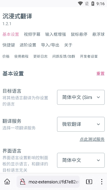 点击界面左下角的“设置”选项,即可查看并调整各类翻译功能的相关配置以及偏好设置。