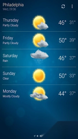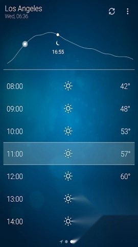 长期天气预报的时效可达15天。除了能查看实时天气状况外,Weather还为用户提供长达两周的天气预报服务,便于用户更合理地规划未来的各项事务。