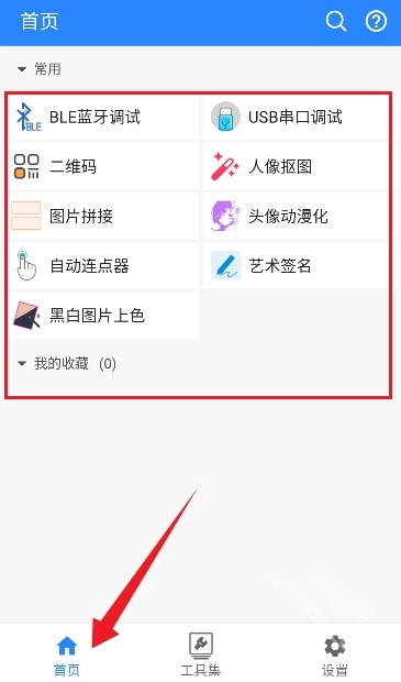 在首页可使用蓝牙调试、串口调试等功能;