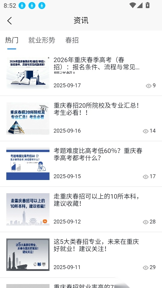 进入软件首页后,向下滑动界面找到“招考资讯”功能按键,点击该按键旁的“查看更多”按钮即可进入相关页面。