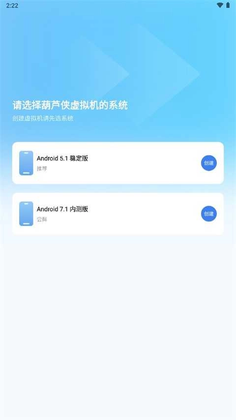 回到主界面挑选适配自身的虚拟系统版本,点击创建按钮即可启动构建流程。