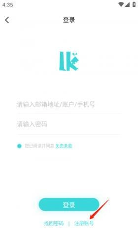 点击注册账号。
