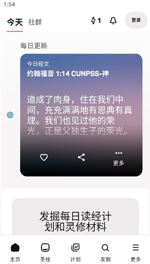 4. 社区互动:用户能够加入圣经阅读社群,和其他信徒交流阅读感悟,携手成长。