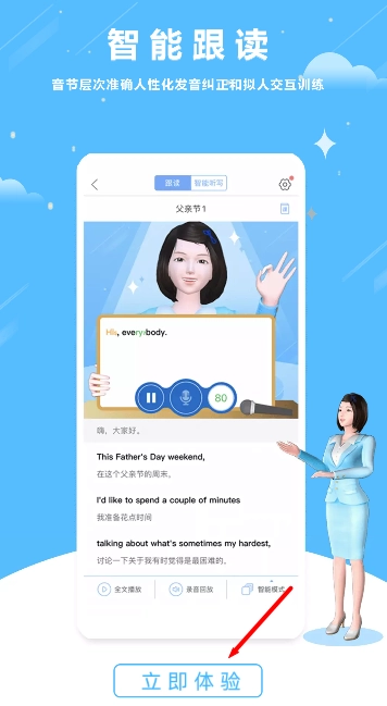 提供智能跟读、超级听写、电影绘本配音等功能,支持逐句练习与发音精准测评。
