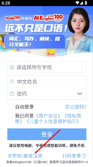 在注册选项里选择“非学校/散客注册”,系统会跳转至对应的注册表单页面。