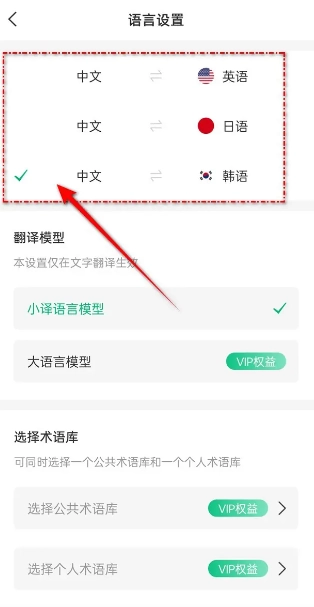 根据实际需求勾选“中英”“中日”或“中韩”互译选项就可以了。