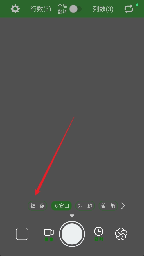 回到拍摄界面,接着点击屏幕上的“镜像”按钮,镜像模式便会正式启用。