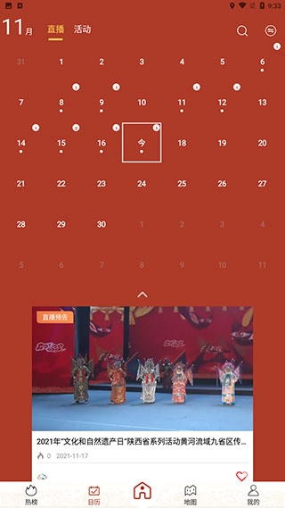 接下来是软件的日历页面,这里呈现的是全国各文化馆直播活动的日程安排。我们既能查看过往的历史直播记录,也能了解未来一段时间的直播预告,以便及时规划活动时间。