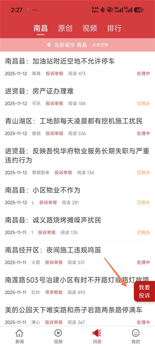 在问政页面的右下角,找到并点击「我要投诉」按钮,即可进入投诉信息的填写界面。
