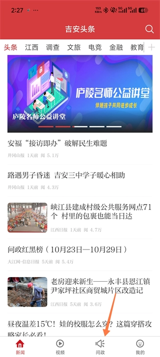 打开吉安头条App,在首页浏览新闻的过程中,点击进入「问政」板块。