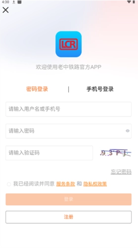 安装完成LCR中老铁路后,进入主页面完成账号注册并登录!