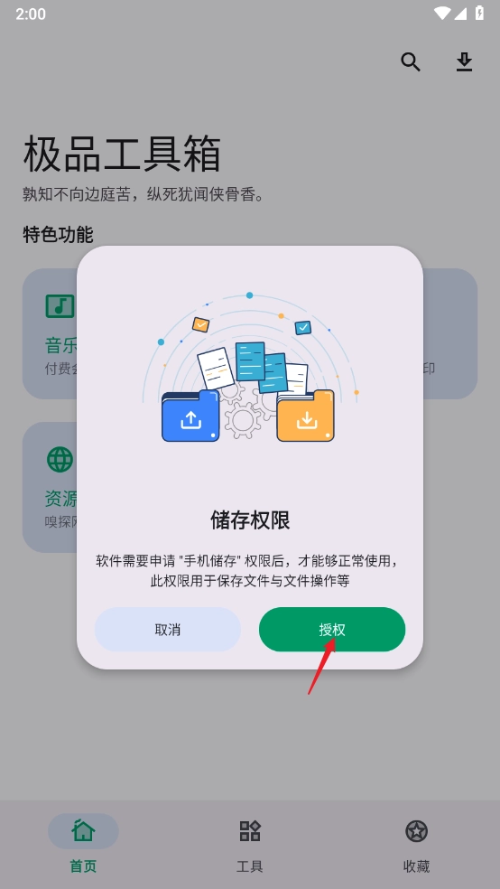 先在本站完成软件安装,随后点击“授权”按钮,允许授予相关权限以进行访问。