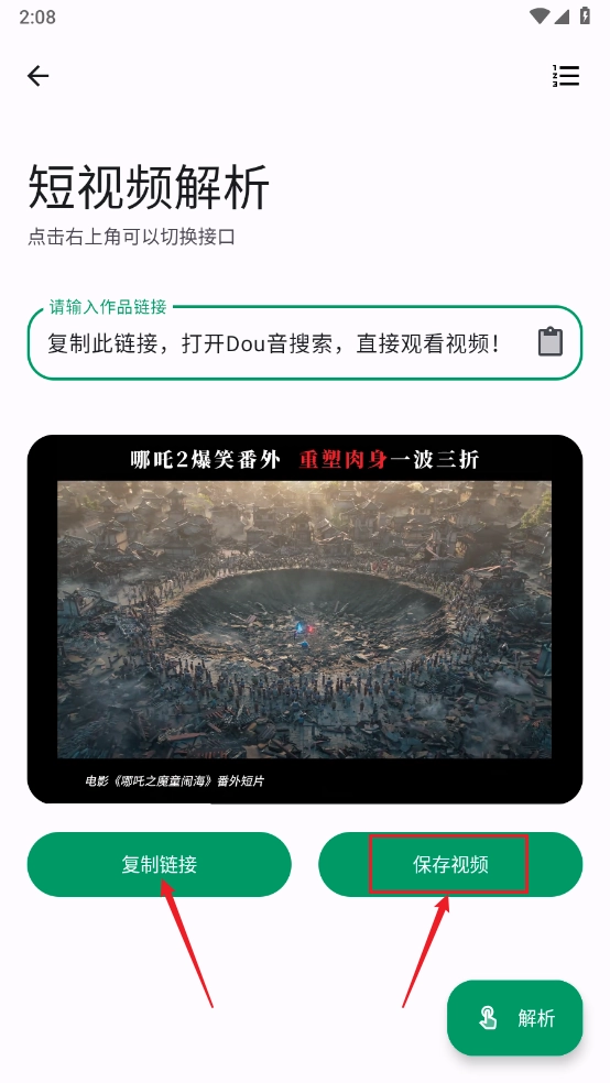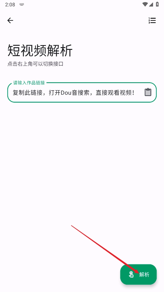 例如打开短视频解析工具,把作品链接粘贴进去,然后点击右下角的“解析”按钮。