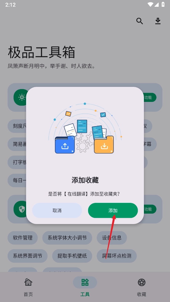 长按所需收藏的工具。
