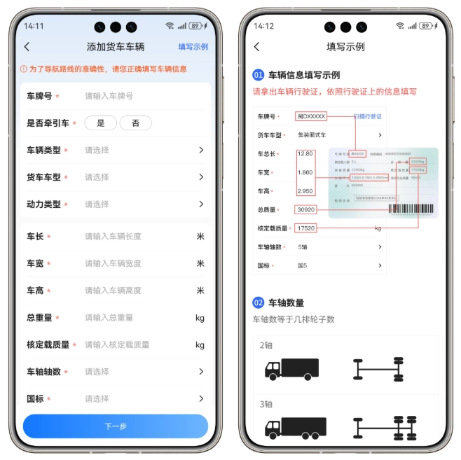 车辆信息可参考右上角的填写示例,所有带*标识的项目都是必填项,请您务必如实填写。