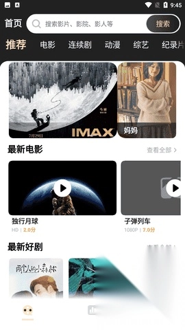 搜索功能能帮你轻松定位到心仪的影视作品,你总能找到想看的内容;系统还会通过数据分析进行智能推荐,让观影体验更便捷。