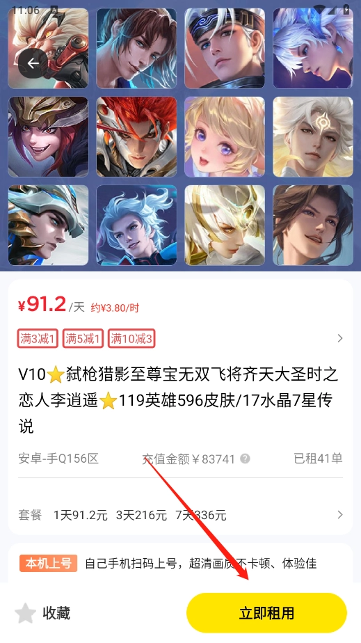 选择合适的账号之后,点击“立即租用”即可。