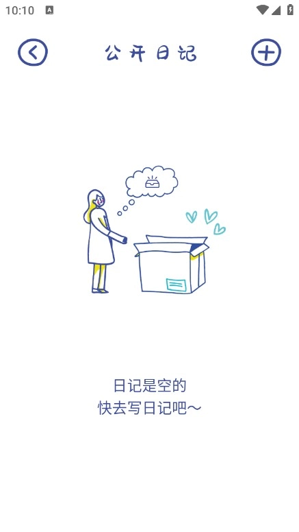 在本站安装emmo日记应用,安装完成后打开进入应用界面,随后点击页面中间位置的加号按钮。