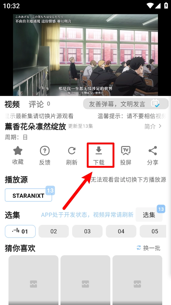 打开软件,进入动漫详情页点击""按钮。