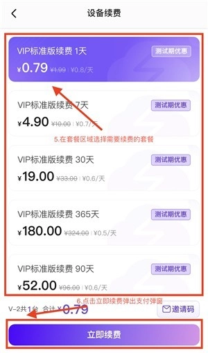 点击对应套餐,能看到费用明细,最后点击立即续费。