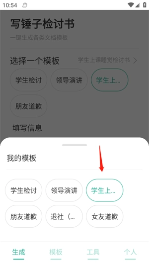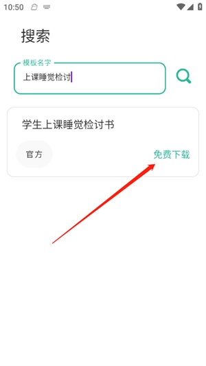 比如,面对上课打瞌睡的状况,我们能够搜索“上课睡觉检讨书”的模板,接着点击“免费”来获取。