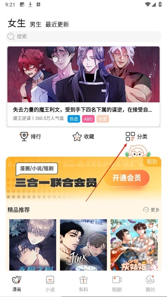 1、打开乐可漫画,点击【分类】,筛选内容。