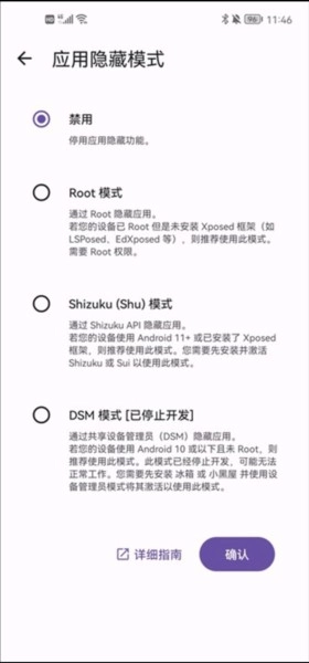 免Root应用隐藏支持Root、Shizuku、DSM等多种隐藏模式。