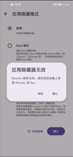 若您的设备已完成Root操作且安装了Magisk,建议选用Shizuku/Sui模式。