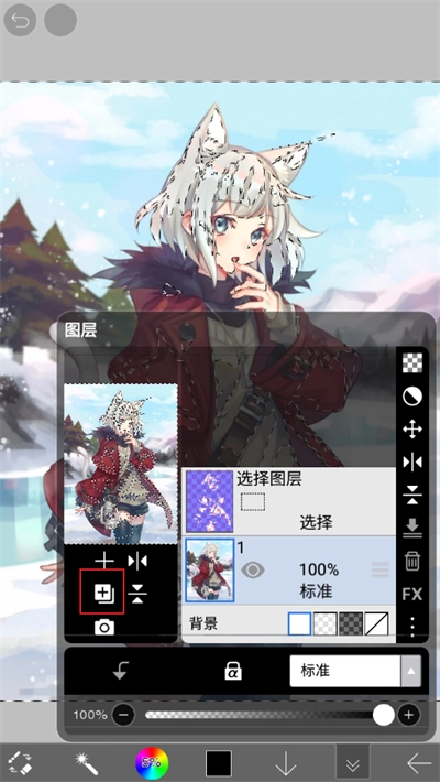 进入图层功能界面后点击其中的【+】选项;