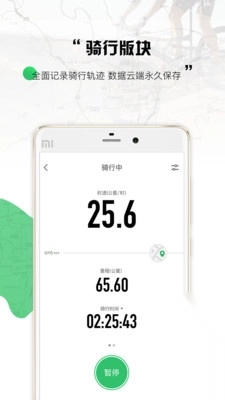 点击“骑行”选项可以进行骑行数据的记录。