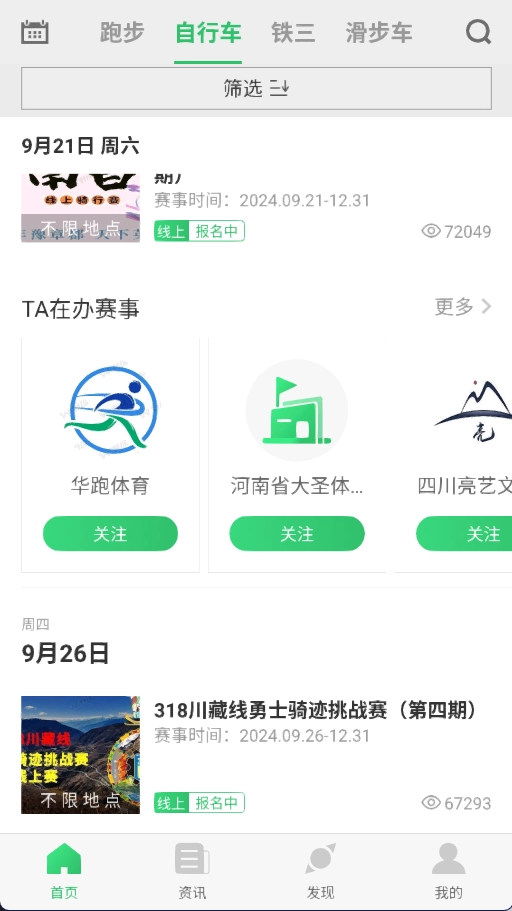 提供赛事、铁三、骑行产品、骑行知识、旅行等方面的资讯。