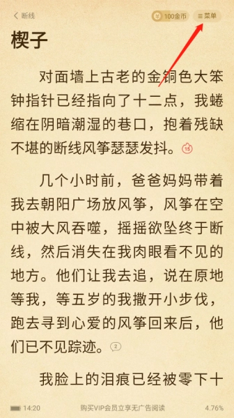 在菜单选项里,点击顶部的“全本”按钮,就能开启整部小说的阅读。