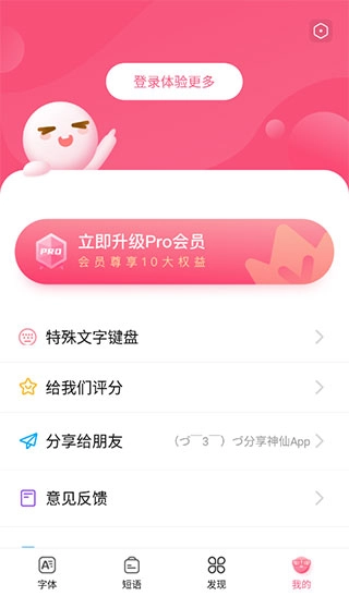 若需要使用特殊文字键盘,可在“我的”页面进行操作。