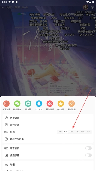 在下发弹出的页面内,找到倍速并选择倍速速度即可。
