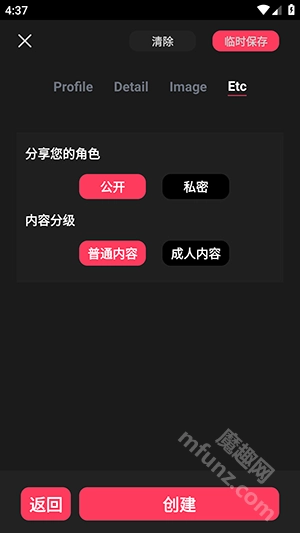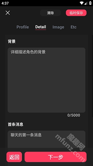 支持自定义角色的姓名、背景设定、性格特点以及首次互动消息,助力用户打造独一无二的专属AI伴侣