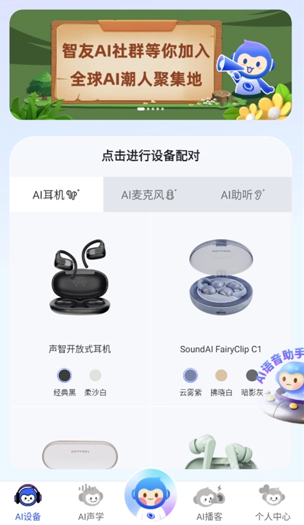 支持声智灵耳、领夹麦克风等设备快捷连接