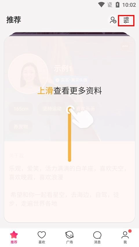 设置完成后返回主页,点击底部的爱心按钮来表达喜欢,建议多点击几个进行点赞。