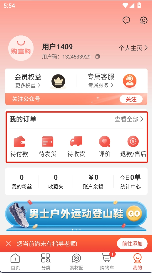 个人中心:在“我的”页面里,能够查看订单状态、待收货订单以及优惠券等相关信息。
