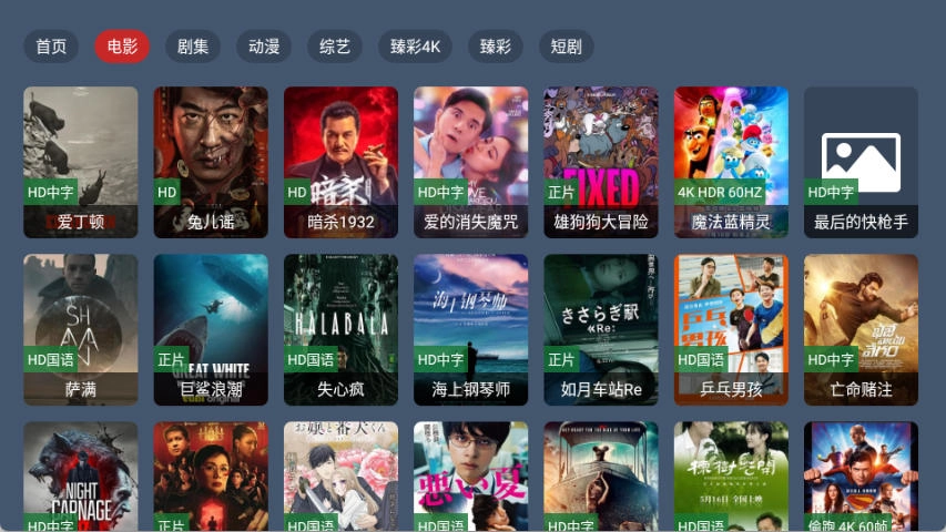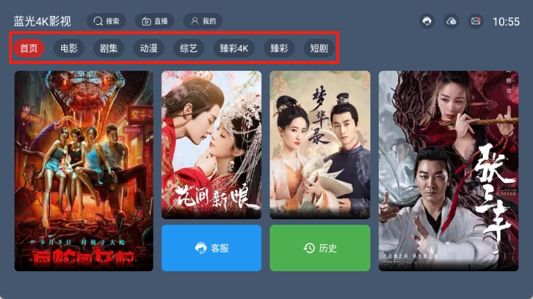 打开蓝光4k影视软件,在首页即可看到每个栏目。